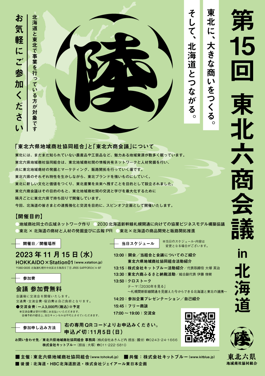 東北六県地域商社組合の活動も3年目に入ります。第15回となる東北六商会議は東北を飛び越えて北海道にてスピンオフ開催を行います。